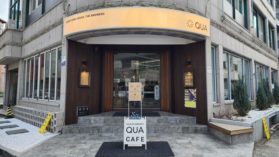 카페 "쿠아(QUA)"는 대전 유성구 신성동에 위치한 과학 테마 카페로, 커피와 디저트를 즐기며 과학적 식경험을 할 수 있는 독특한 공간입니다. 이 카페는 연구단지 근처에 있어 많은 연구원들과 가족 단위 방문객들에게 인기가 있습니다. 과학적 식음료의 대표 메뉴로는 우주걘역시, 오로라 에이드, 사건의 지평성 라떼, 단층의 차가운 맛, 무암무암, 역암쿠키, 라바케이크 등 다양한 과학적 식음료들이 있습니다.